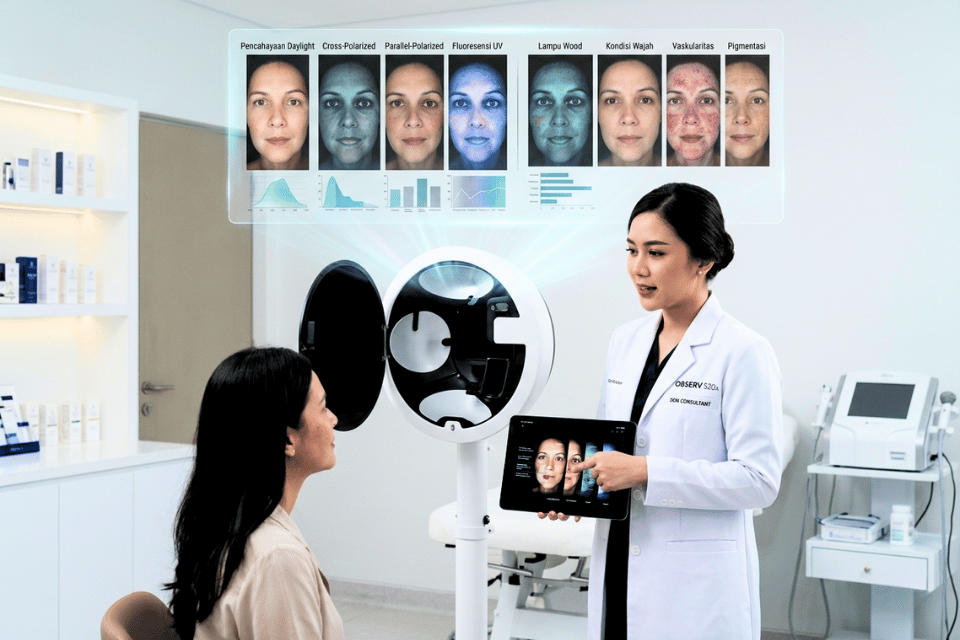 Di pabrik maklon kosmetik yang udah melek teknologi, OBSERV 520x bukan cuma pajangan. Ini adalah alat analisa kulit tingkat dewa yang menggunakan teknologi pencitraan paten. Dia bakal memotret wajah kamu (atau sampel panelis) dengan berbagai jenis lampu yang bikin dosa-dosa kulit di masa lalu—kayak sisa jerawat tahun 2010 atau flek akibat males pakai sunscreen—kelihatan semua!